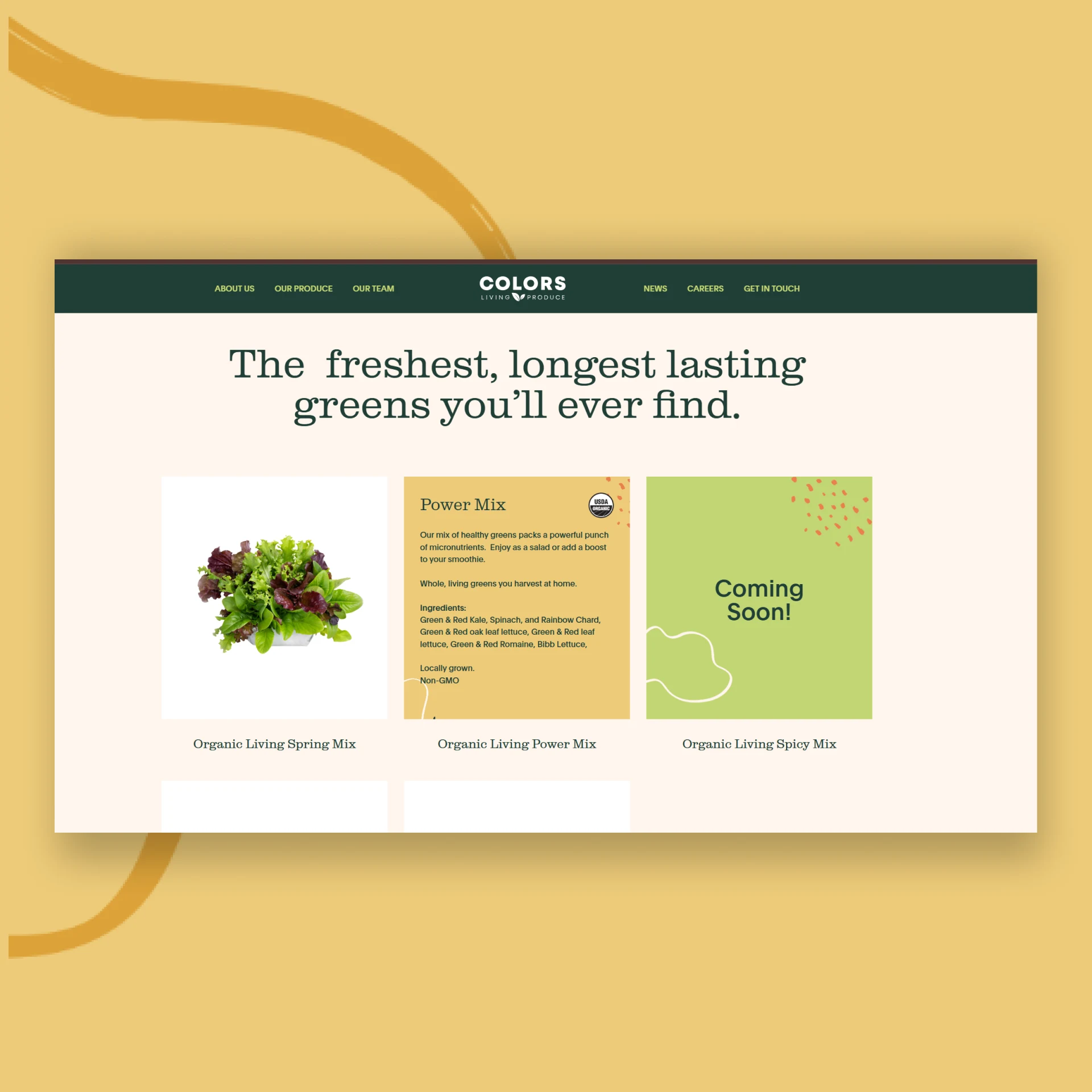 Colors Fresh Produce brings vibrant, high-quality specialty produce to market. Goodthings developed their brand identity and visual presence to reflect the colorful, fresh-forward nature of their product line.